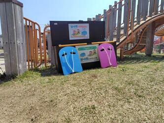 ローラー滑り台をより快適にお楽しみいただくため、滑り台用シートとしてビート板の貸し出しを試験的に実施いたします。